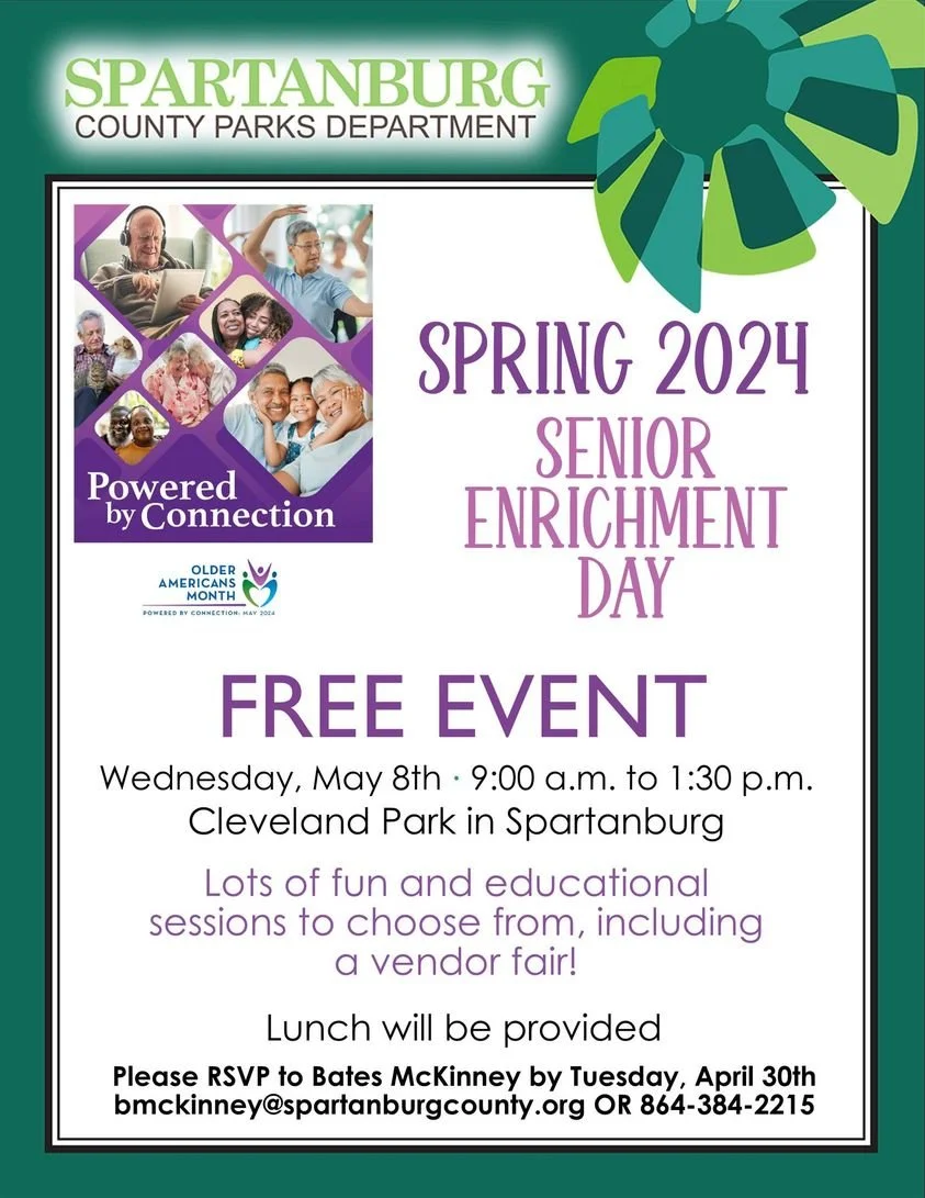 Senior Enrichment Day at Spartanburg Cleveland Park. Mary Snoddy will present a program on Seed Starting and a program on Vegetable Gardening in Containers. Pre-registration required: https://www.seniorsengage.com/event/reminder-senior-enrichment-day-spring-2024/